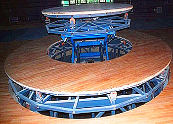 升降舞臺是一種可旋轉的特殊升降平臺,機械旋轉平臺設備中應用比較廣泛的設備之一,在專業歌劇院、舞劇院、話劇院,會堂、影劇院、多功能廳、演播廳、文化體育場館、酒店等文化娛樂場所。