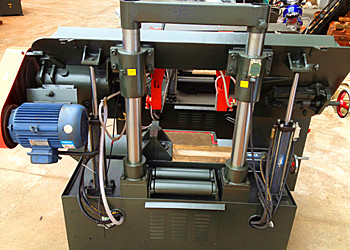 性能特點:1,雙立柱結構,鋸架導向采用一圓一方導軌,保證導向精度,鋸削穩定可靠;2,鋸床傳到機構精密平衡校正,減少振動確保鋸帶不易斷齒、拉齒;3,機械動力清屑裝置,有效清理鋸齒間鐵屑,保護延長鋸帶使用壽命;